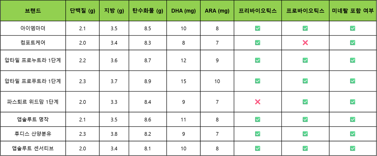 분유의 성분을 한눈에 비교해보겠습니다.
